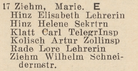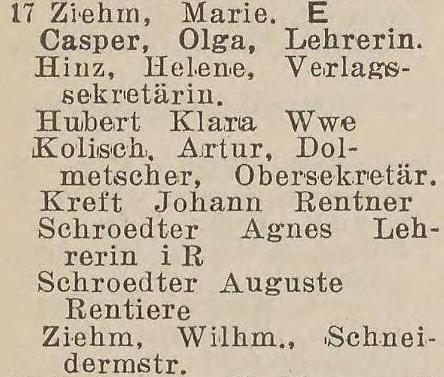 Wera Ziehm. Książka adresowa z 1931 roku. Zbiory Pomorskiej Biblioteki Cyfrowej.