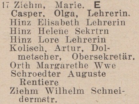 Casper, Olga, nauczycielka szkoły podstawowej (Volksschullehrerin).