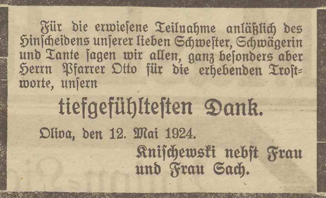 Knischewski. Sach. Olivaer Zeintung nr 111 z 08. 05. 1924 r.