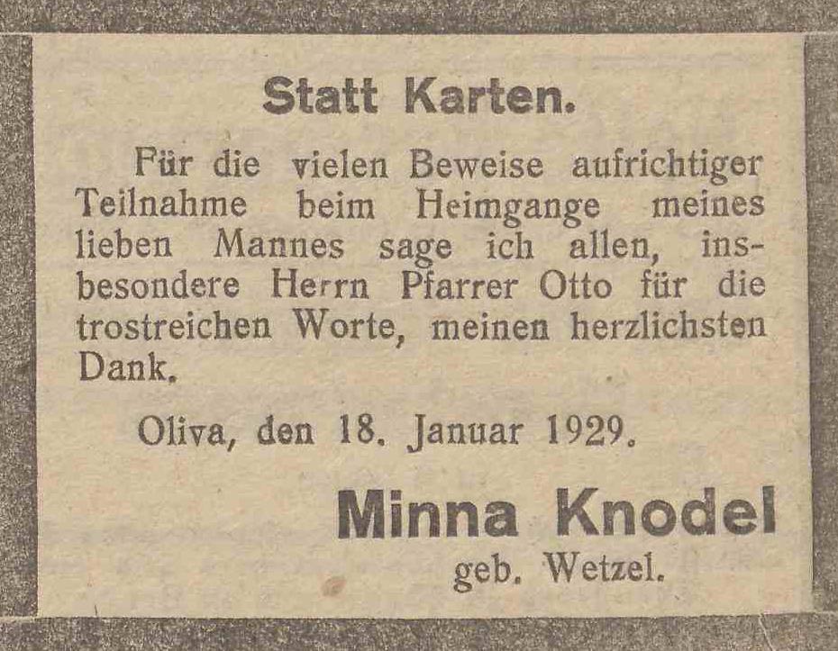 Maria Kondel zd. Wetzel. Olivaer Zeintung nr 16 z 19. 01. 1929 r.