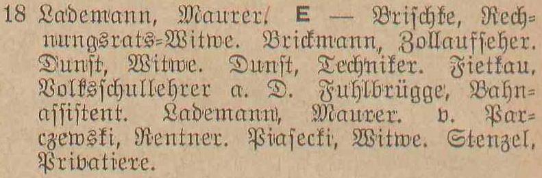 Lademann. Książka adresowa gminy Oliwa z 1916 roku. Zbiory Mirosława Piskorskiego.