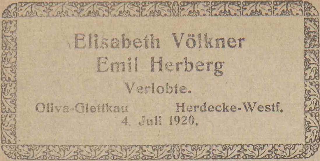 Elisabeth Völkner (Emil Herberg). Olivaer Zeintung nr 153 z 03. 07. 1920 r.