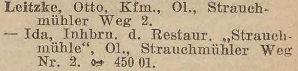 Ida Leitzke. 2. Gemeide Oliva. Książka adresowa z 1926 roku. Zbiory Pomorskiej Biblioteki Cyfrowej.