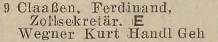 Ferdinand Claaßen. Ksi¹¿ka adresowa z 1936-1937 roku. Zbiory Pomorskiej Biblioteki Cyfrowej.