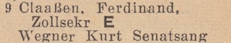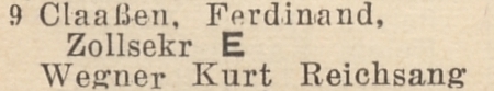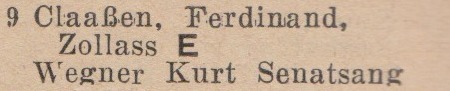 Ferdinand Claaßen. Ksi¹¿ka adresowa z 1937-1938 roku. Zbiory Piotra Mazurka.