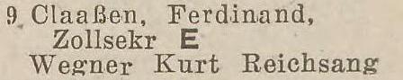 Ferdinand Claaßen. Ksi¹¿ka adresowa z 1939 roku. Zbiory Krzysztofa Gryndera.