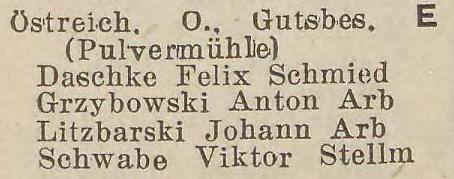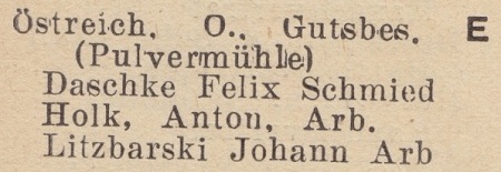 Jeszcze dalej, nad młynem prochowym znajdował się kiedyś inny młyn, który po raz pierwszy został pokazany na mapie z 1811 r. W 1833 r. inna mapa również pokazuje ten młyn, jednak bez dalszych szczegółów. W dokumencie nr z 1844 r. wymieniono go jako folusz. Istniał jeszcze w 1847 roku. W 1864 roku nie było już tego oznaczenia. Jednakże w 1879 r. Brandstäter nadal wspominał, że nad Pulvermühle znajdował się folusz. Jego dawne położenie jest do dziś bardzo wyraźnie widoczne; Dom młynarza nadal tam stoi.