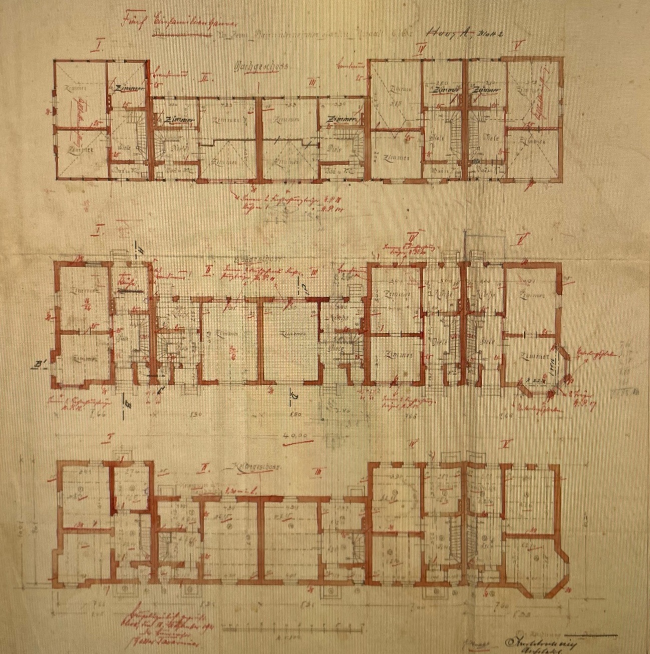 To najstarsza zabudowa przy ulicy Bolesława Krzywoustego (d. Fürstliche Aussicht w tłumaczeniu: Książęcy widok). Składający się z 5 budynków „bliźniak” został wzniesiony w 1912 roku przez właściciela firmy budowlanej, a zarazem ich długoletniego właściciela, Martina Knaaka.