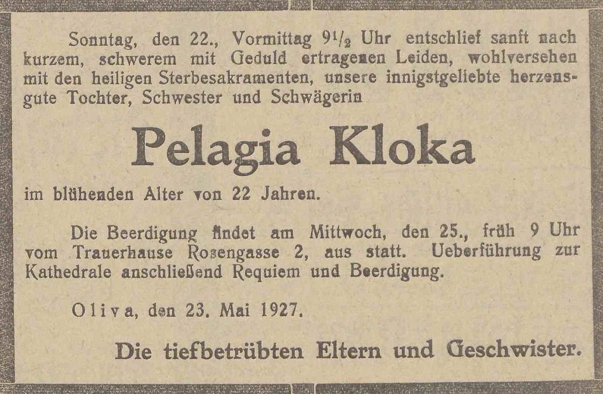 Pelagia Kolka. Olivaer Zeintung nr 120 z 24. 05. 1927 r.