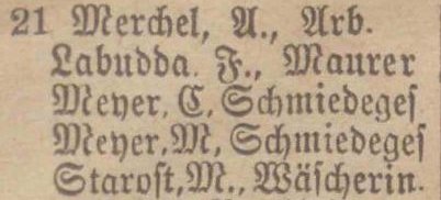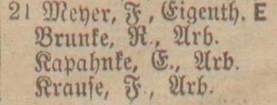 Meyer, Friedrich, Stahlschmied. Meyer, Franz, Arb. Weichbrodt, August, Maurer.