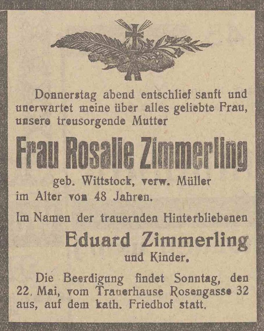 Kitowski, Anna, geb. Alberktzi, Ww. Schibjorowski, Herm., Zimmermann. Zimmerling, Anna, geb. Godlewski, Ww.