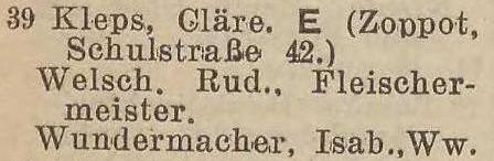 Cläre Kleps. Książka adresowa z 1934 roku. Zbiory Pomorskiej Biblioteki Cyfrowej.