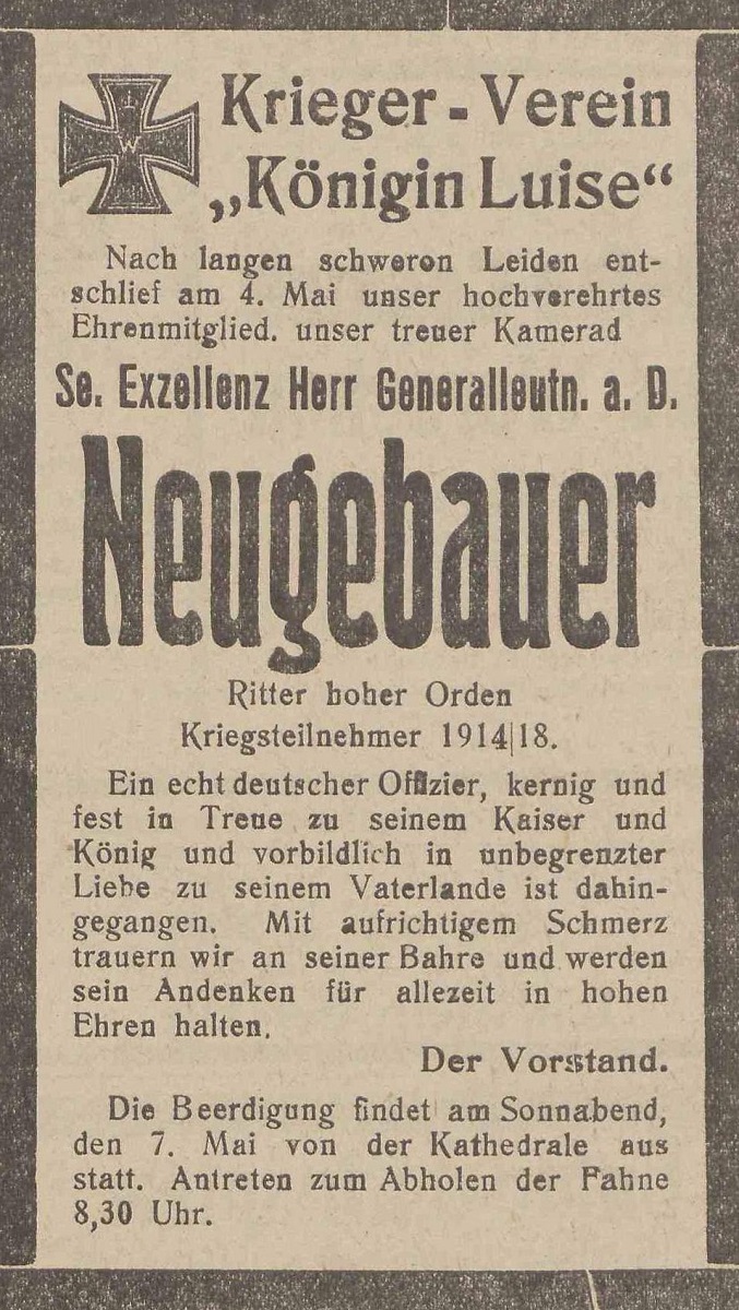Neugebauer, Wilhelm, General Teutnant a. D.