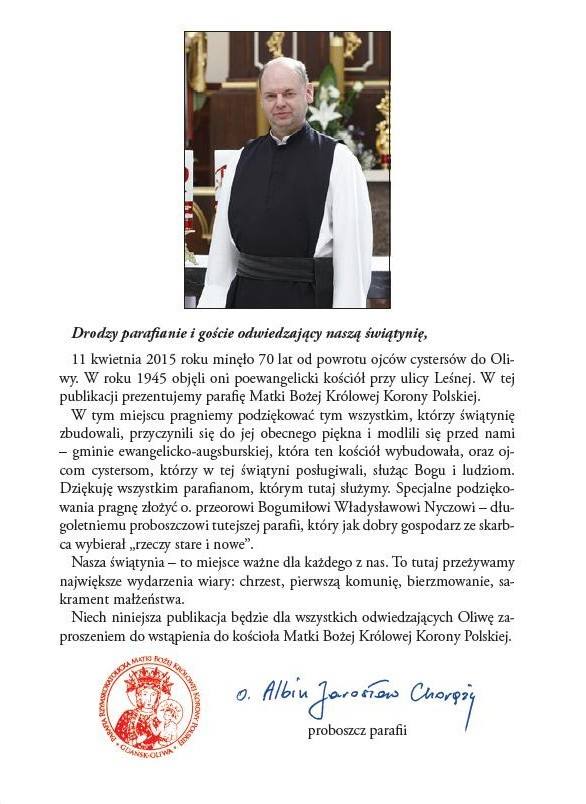 Ponieważ protestanci Niemcy wyprowadzili się z Oliwy, nowy kościół poprotestancki (przypis 23) został przydzielony przez władze państwowe Cystersom, a dawniejszy parafialny kościół katolicki pod wezwaniem św. Jakuba został przywrócony katolikom i służy obecnie jako kościół pogrzebowy.