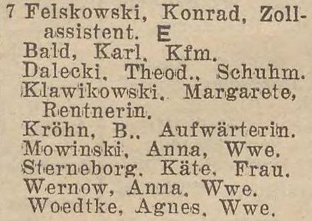Adres: Waldstraße 7. Marta Klawikowski (ur. 1867, zm. 22.10.1944 - rak piersiowy). Źródło: , 10.1944 poz. 93.