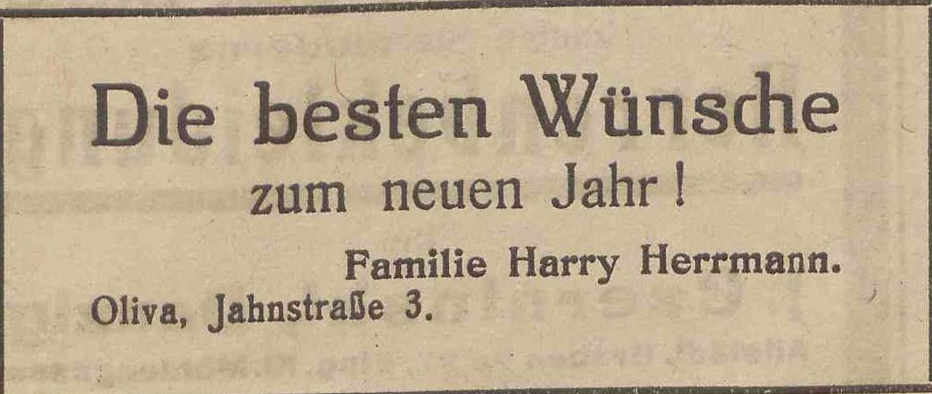 Henry Herrmann. Podziękowania noworoczne, Olivaer Zeitung nr 305 z 31. 12. 1924.