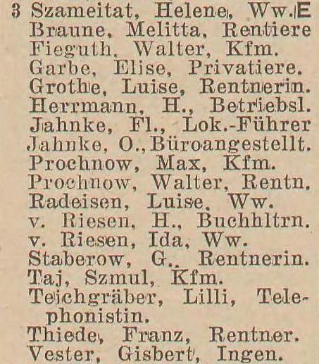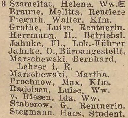 Książka adresowa z roku (Jahnstraße 3):