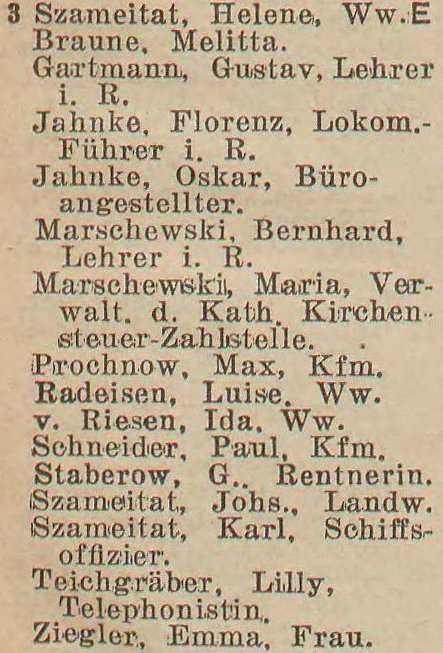 Szameitat. Książka adresowa gminy Oliwa z 1916 roku. Zbiory Mirosława Piskorskiego.