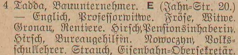 Książka adresowa z roku (Jahnstraße 4):