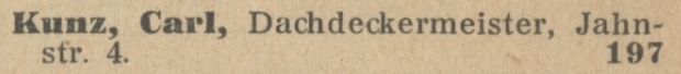Kunz, Karl, dekarz (Dachdecerinstr.).