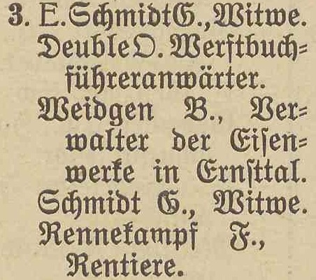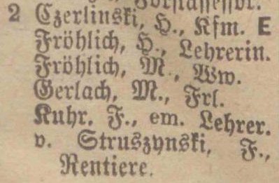 Gertrud Schmidt. Książka adresowa gminy Oliwa z 1916 roku. Zbiory Mirosława Piskorskiego.