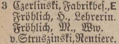 W 1901 roku letników przymował Czerlinski (Hermann), Hinter der Rosengasse 3 (Olivaer Nachrichten, ).