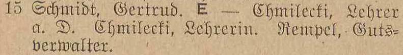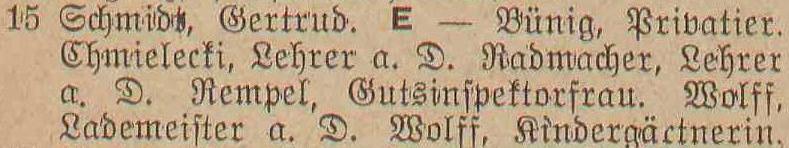 Gertrud Schmidt. Książka adresowa gminy Oliwa z 1915 roku. Zbiory Pomorskiej Biblioteki Cyfrowej.