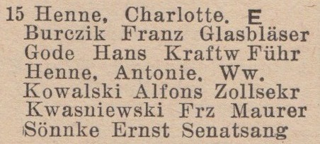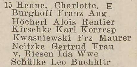 Charlotte Henne. Książka adresowa z 1926 roku. Zbiory Pomorskiej Biblioteki Cyfrowej.