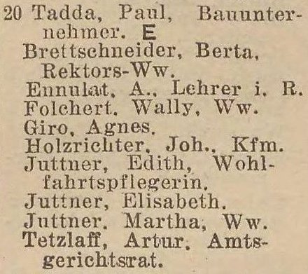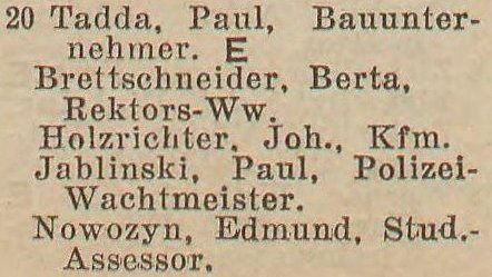 Paul Tadda. Książka adresowa gminy Oliwa z 1916 roku. Zbiory Mirosława Piskorskiego.