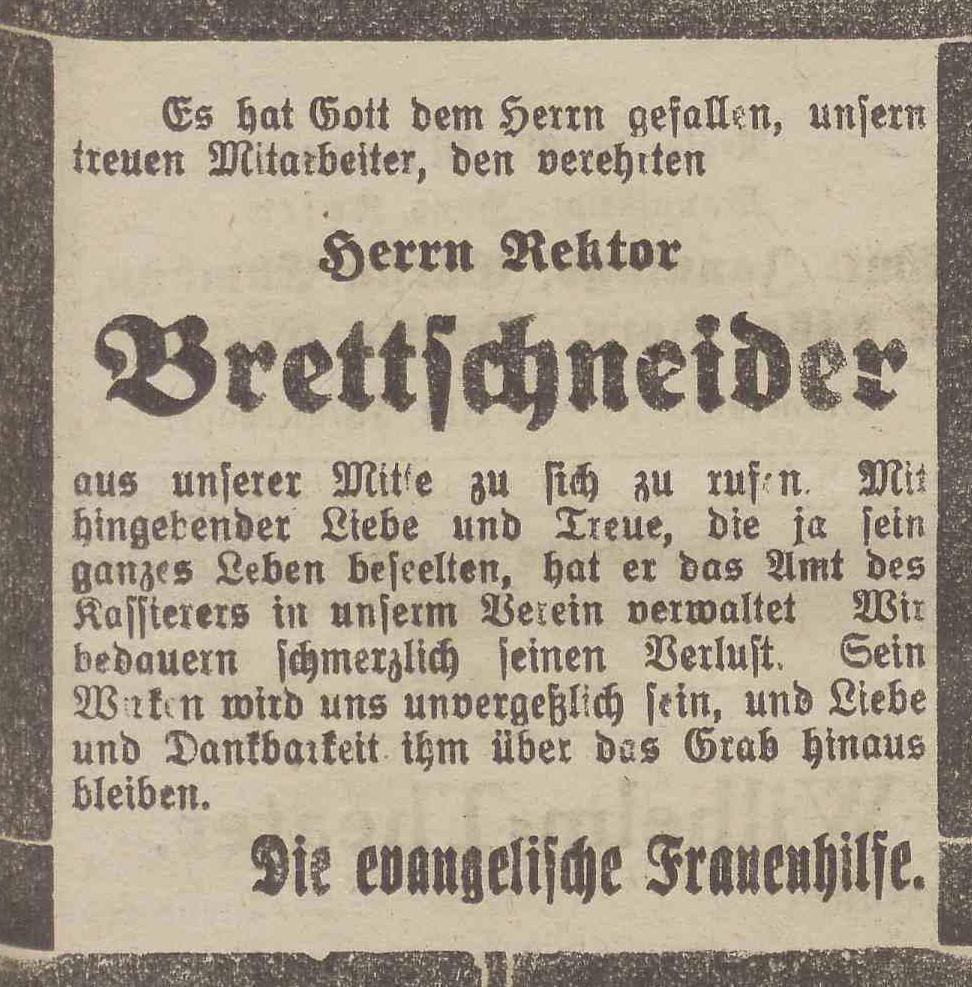 Brettschneider, Friedrich, emerytowany rektor (Rektor i. R.).