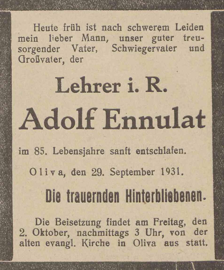 Adolf Ennulat. Danzig-Olivaer Zeintung nr 229 z 30. 09. 1931 r.