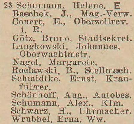 Helene Schumann. Książka adresowa z 1931 roku. Zbiory Pomorskiej Biblioteki Cyfrowej.