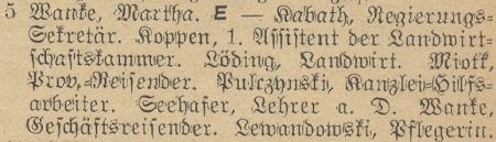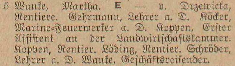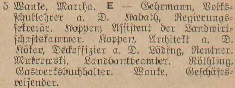 Martha Wanke. Ksi¹¿ka adresowa gminy Oliwa z 1916 roku. Zbiory Miros³awa Piskorskiego.