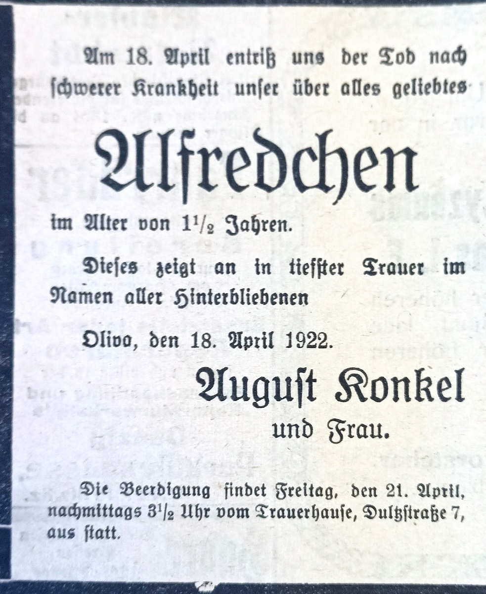 Alfred Konkel. August Konkel. Danziger Kreis-Zeitung 1922. Przekaza³a Gra¿yna Niemyjska.