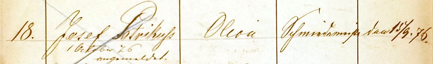 Josef Potrykus. Baukonholle Oliva IXX. Wpis z 13. 09. 1876. Przekazała Grażyna Niemyjska.