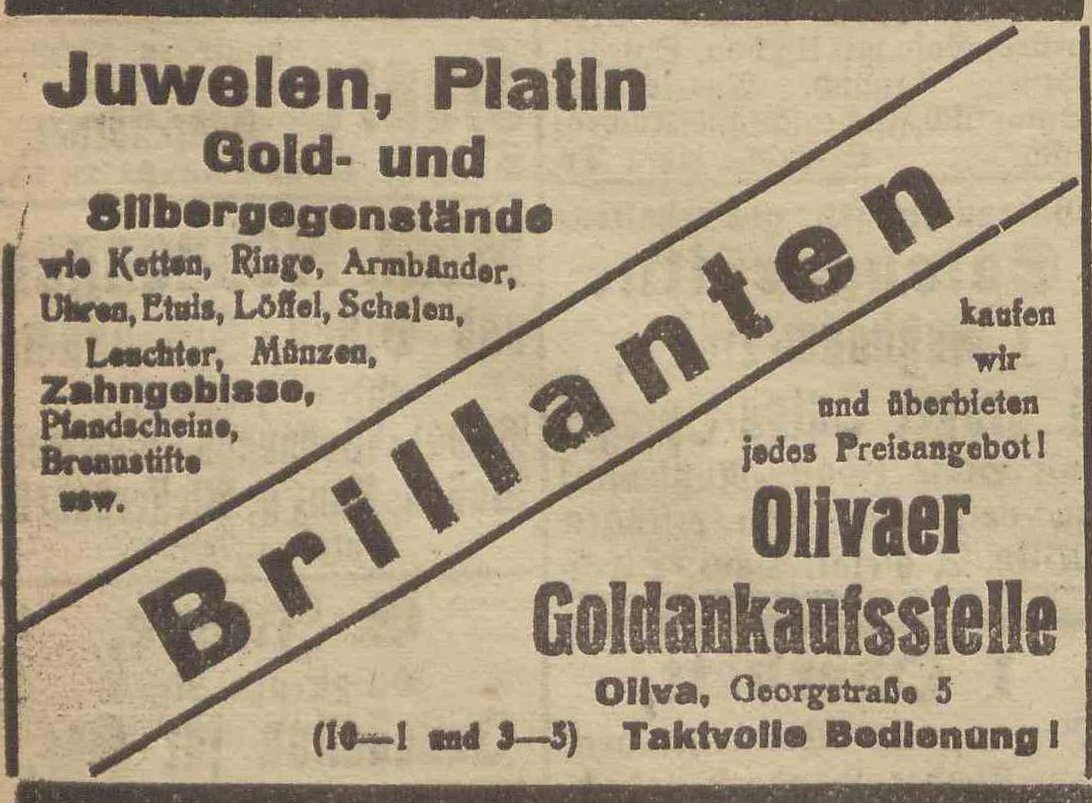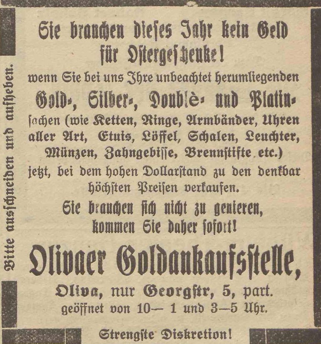 Reklama. Olivaer Zeintung nr 73 z 27. 03. 1923 r.