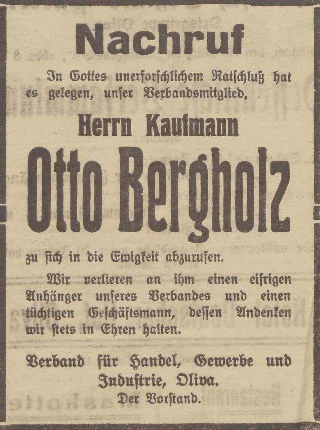 Otto Bergholz. Olivaer Zeintung nr 67 z 19. 03. 1924 r.