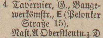 Gustav Tavernier. Przez wiele lat właściciel budynków nr 3-8 przy ul. Paulastraße (Witkiewicza), willi "Louise", "Viktoria" i "Elisabeth" przy ul. Kronprinzenallee (Wita Stwosza) oraz domów nr 7 do 9 przy ul. Georgstraße (Obrońcow Westerplatte). Był też właścicielem domów nr 12-14 przy ulicy Pelonker Straße (Polanki).