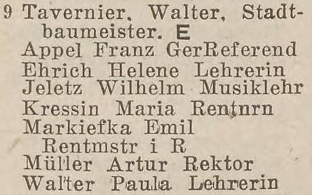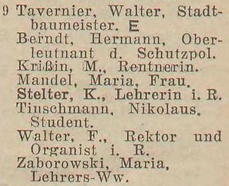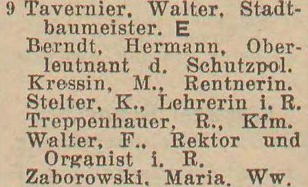 Gustav Tavernier. Książka adresowa gminy Oliwa z 1916 roku. Zbiory Mirosława Piskorskiego.