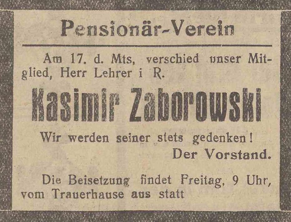Zaborowski, Kasimir, emerytowany nauczyciel (Lehrer i. R.).