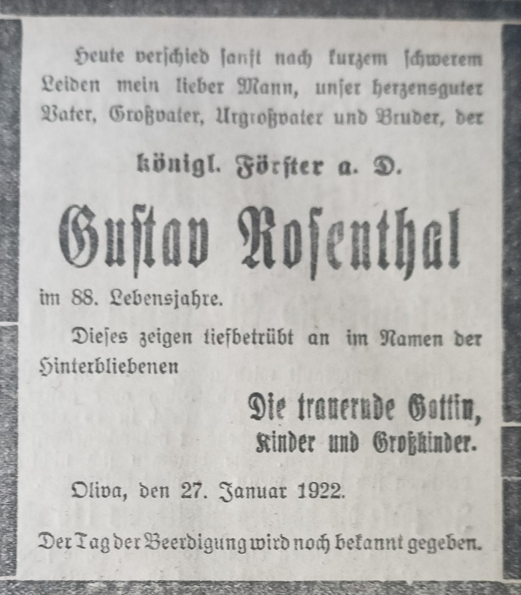Gustav Rosenthal. Danziger Kreis-Zeitung 1922. Przekazała Grażyna Niemyjska.