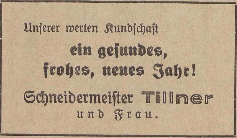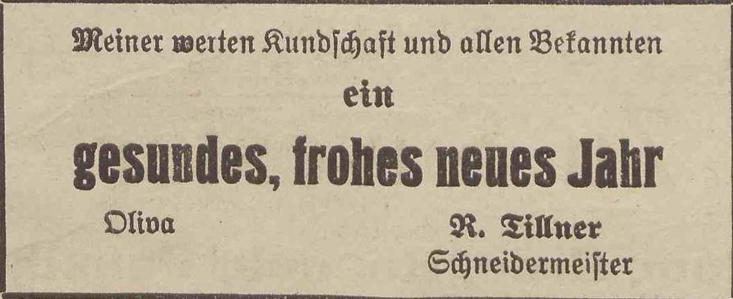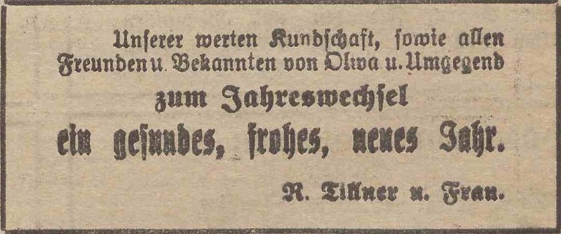 Rochus Tillner. Podziękowania noworoczne, Olivaer Zeitung nr 306 z 31. 12. 1920.