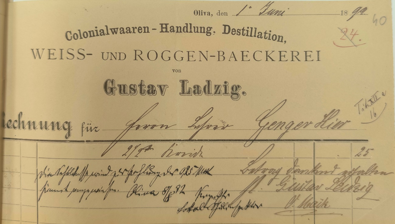 Gustav Ladzig. Rachunek z 01. 06. 1892. Przekazała Grażyna Niemyjska.