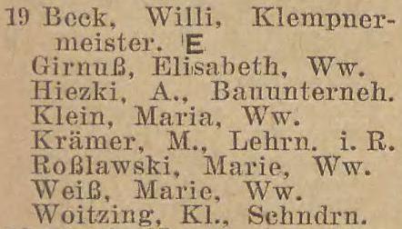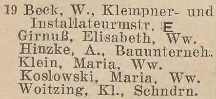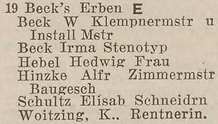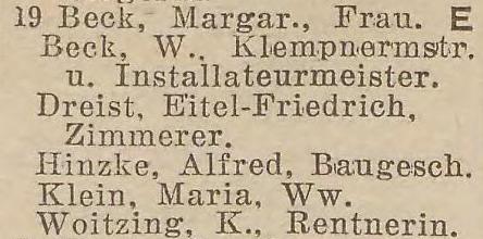 Pani Beck. Książka adresowa gminy Oliwa z 1916 roku. Zbiory Mirosława Piskorskiego.
