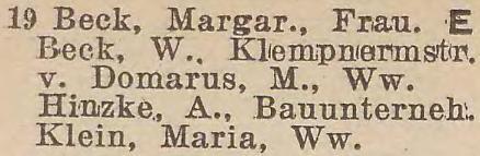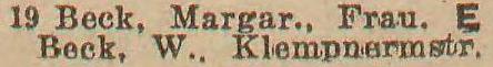Margarete Beck. Książka adresowa z 1927 roku. Zbiory Pomorskiej Biblioteki Cyfrowej.