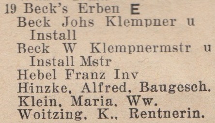 Willy Beck. Bauklempnerei. Książka telefoniczna z 1916 roku. Zbiory Mirosława Piskorskiego.