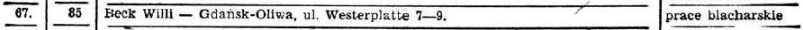Willy Beck. Bauklempnerei. Książka telefoniczna z 1925 roku. Zbiory Mirosława Piskorskiego.