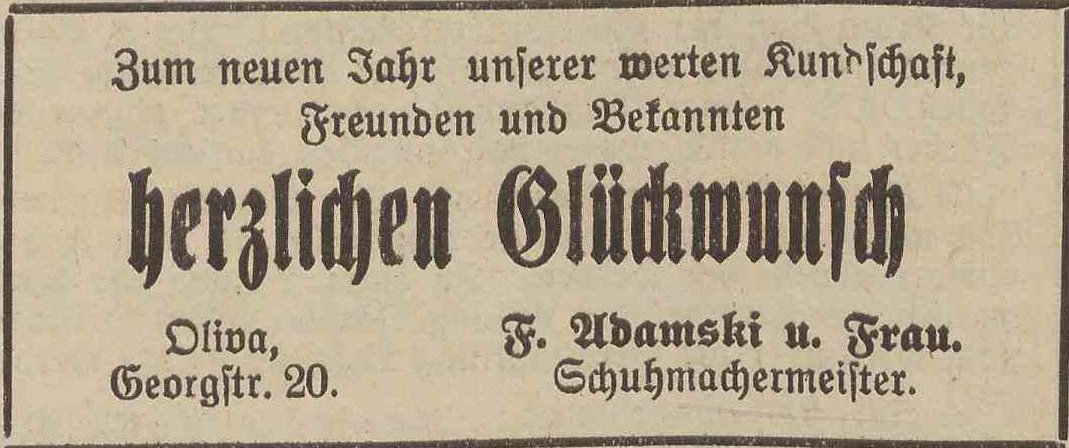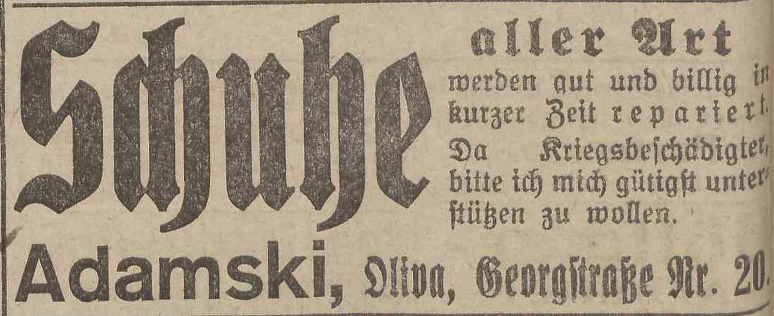 Franz Adamski, Georgstraße 20. Olivaer Zeintung nr 251 z 26. 10. 1920 r.