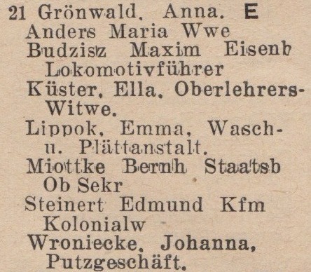 Anna Grönwald. Książka adresowa z 1934 roku. Zbiory Pomorskiej Biblioteki Cyfrowej.
