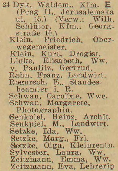 Waldem. Dieck. Książka adresowa z 1929 roku. Zbiory Pomorskiej Biblioteki Cyfrowej.